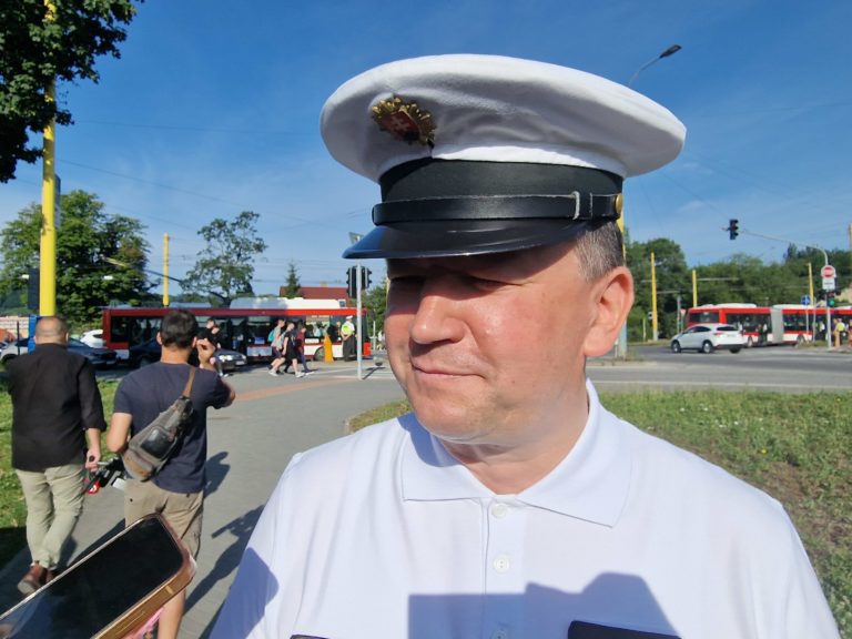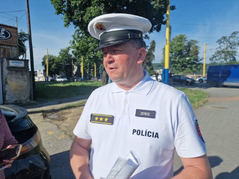 Zástupca riaditeľa Krajského dopravného inšpektorátu v Prešove Jozef Sliva počas vyjadrenia pre médiá o monitoringu a koordinácie dopravy na frekventovaných križovatkách mesta Prešov, ktoré v týchto mesiacoch zažívajú nápor v súvislosti s rekonštrukciou mosta na ulici Lesík delostrelcov. Prešov, 26. jún 2024. Foto: SITA/Ivan Kriššák