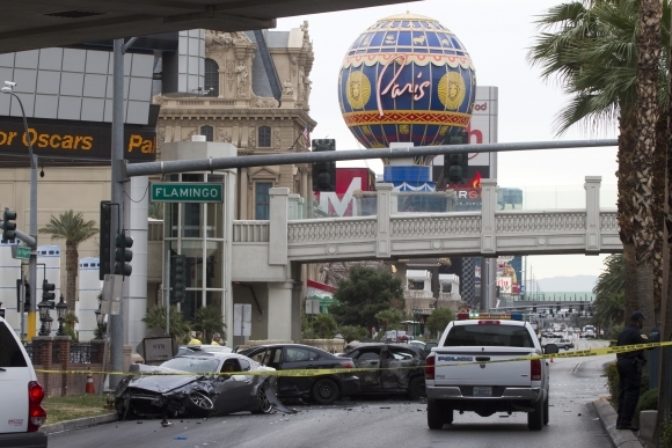 Miesto činu, kde sa odohrala tragédia. Muž a žena zastrelili v pizzérii v Las Vegas dvoch policajtov, na ulici tretiu osobu. Potom obrátili zbrane proti sebe. Foto: SITA/ AP