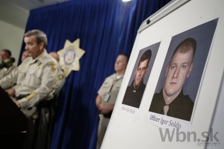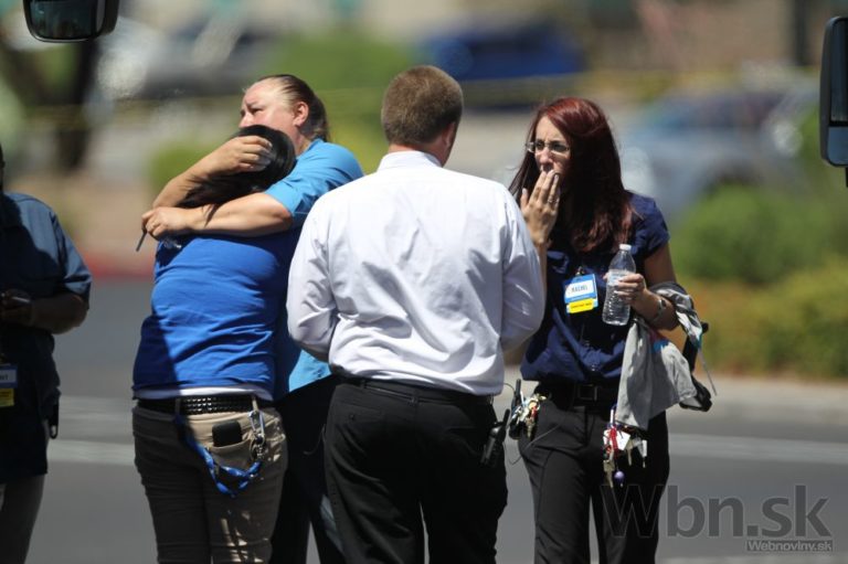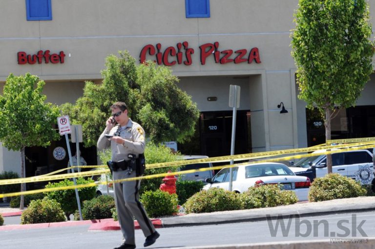 Svedkovia incidentu sú v šoku po tom, ako sa v pizzérií v Las Vegas odohrala streľba. Muž a žena vošli do reštaurácie, kde zastrelili dvoch policajtov. Pár pokračoval vo vyčíňaní aj na ulici a zastrelil ešte jedného človeka a následne spáchali samovraždu. Foto: SITA/ AP