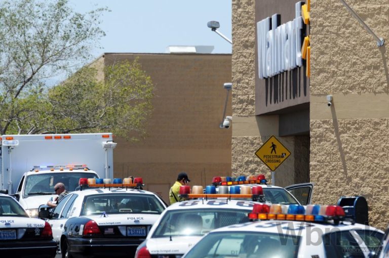 Policajt na mieste nešťastia pri nákupnom centre v Las Vegas v nedeľu 8.06.2014. Muž a žena v reštaurácií zastrelili dvoch policajtov. Keď ozbrojenci vybeholi z reštaurácie zastrelili tretiu osobu a následne spáchali samovraždu. Foto: SITA/ AP