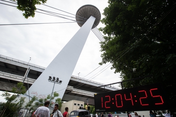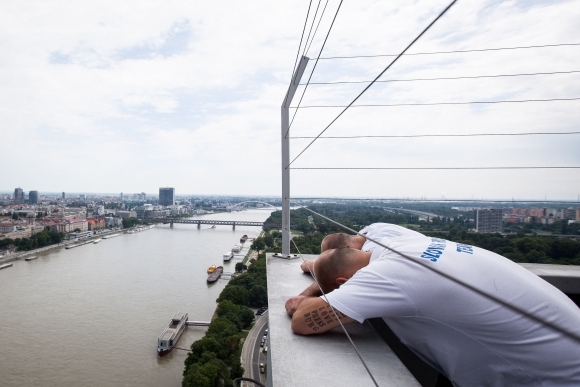 Most SNP počas pretekov po schodoch UFO Vertical Sprint na vežu UFO. Bratislava, 16. jún 2013. Foto: SITA/Jozef Jakubčo