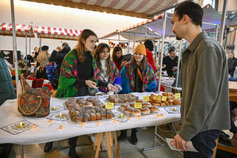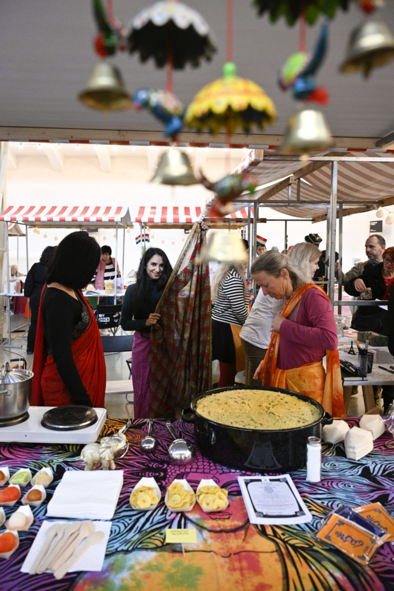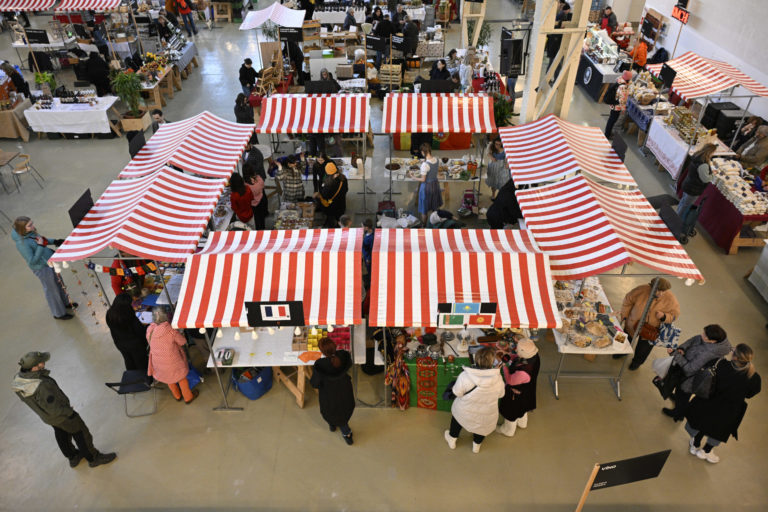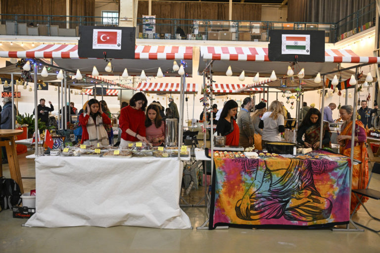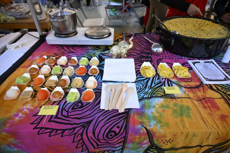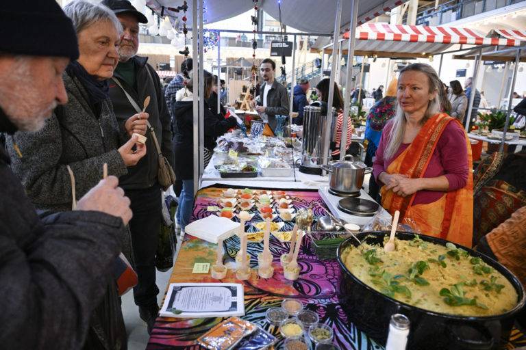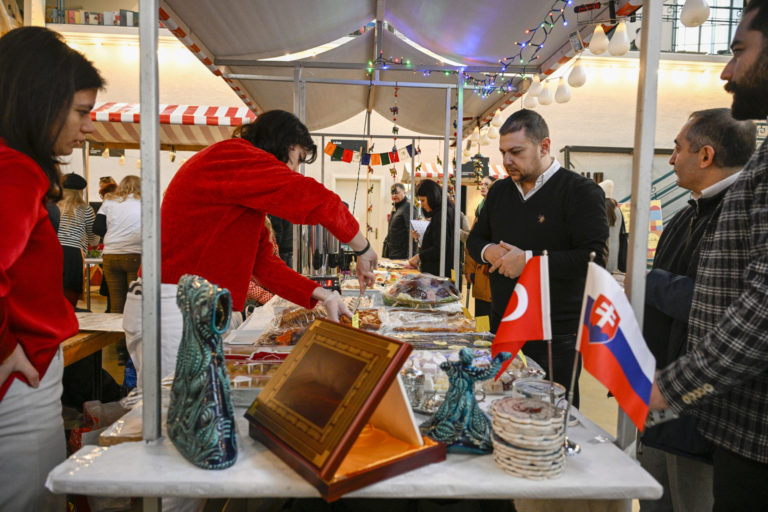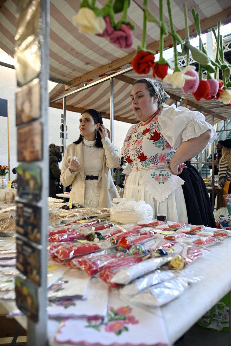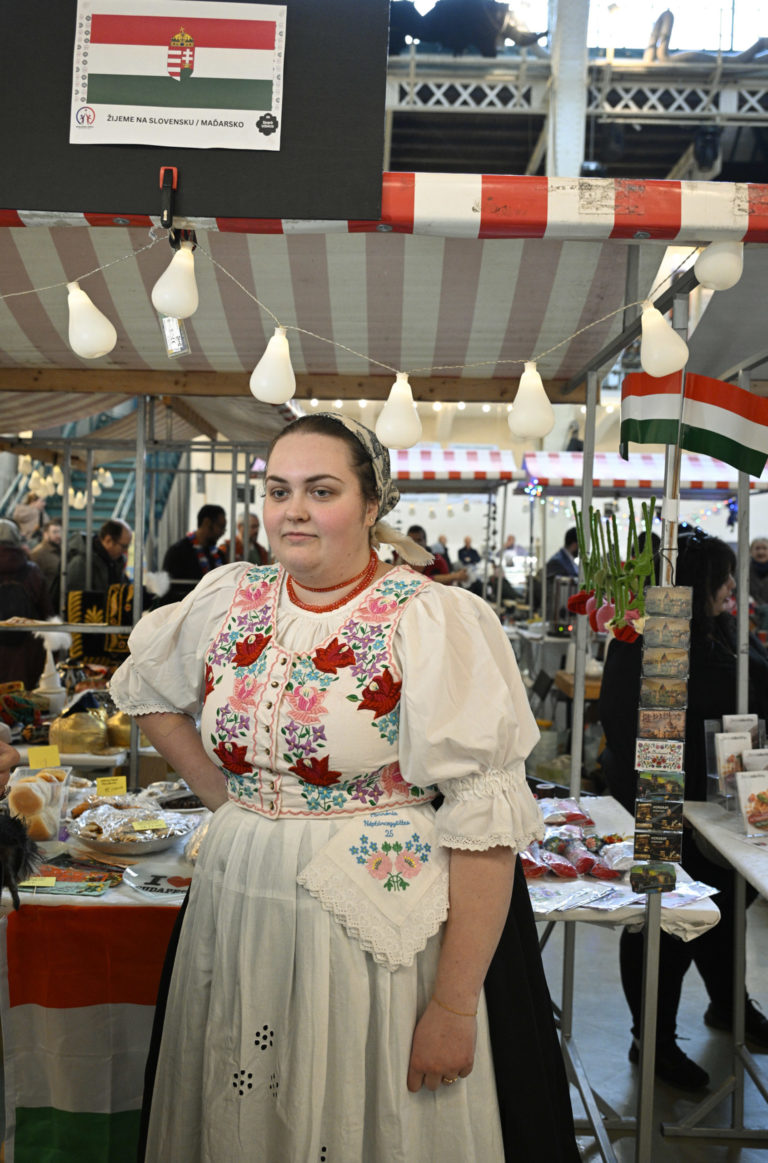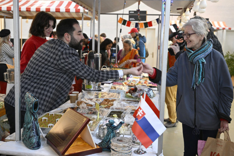 Atmosféra počas podujatia Žijeme na Slovensku na tému: Prezentácia menšín z Talianska, Francúzska, Rakúska, Nemecka, Kazachstanu, Maďarska, Poľska, Indii, Turkménska, Kirgizska a Turecka prostredníctvom hudby, tradičných jedál či nápojov v Starej tržnici v Bratislave. Bratislava, 3. február 2024. Foto: SITA/Milan Illík.