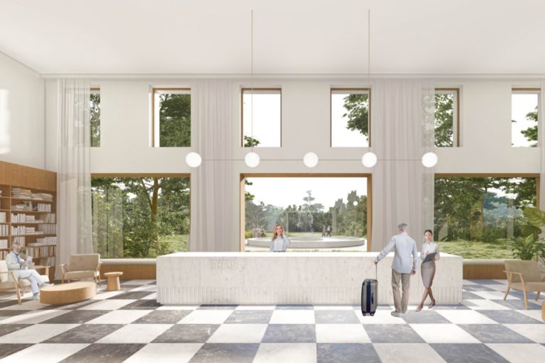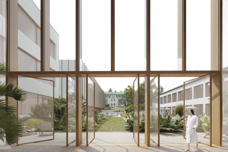 Vizualizácia víťazného návrhu plánovanej rekonštrukcie kúpeľného areálu na Sliači. Sliač, 17 apríl 2023. Foto: SITA/www.novysliac.sk