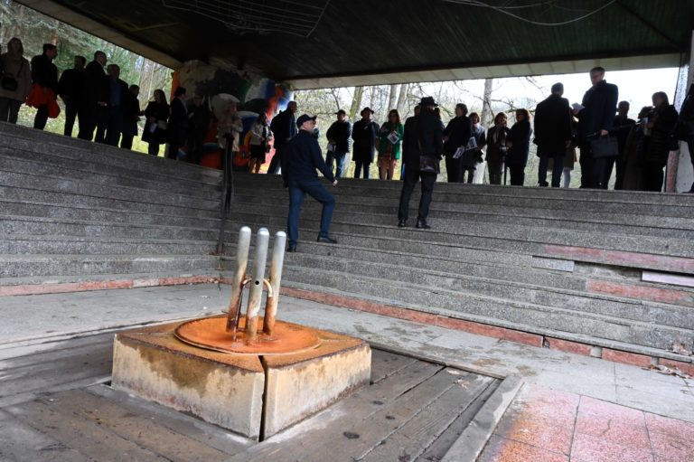 Pavilón minerálnych prameňov počas prezentácie víťazného návrhu plánovanej rekonštrukcie kúpeľného areálu na Sliači. Sliač, 17. apríl 2023. Foto: SITA/Jakub Julény