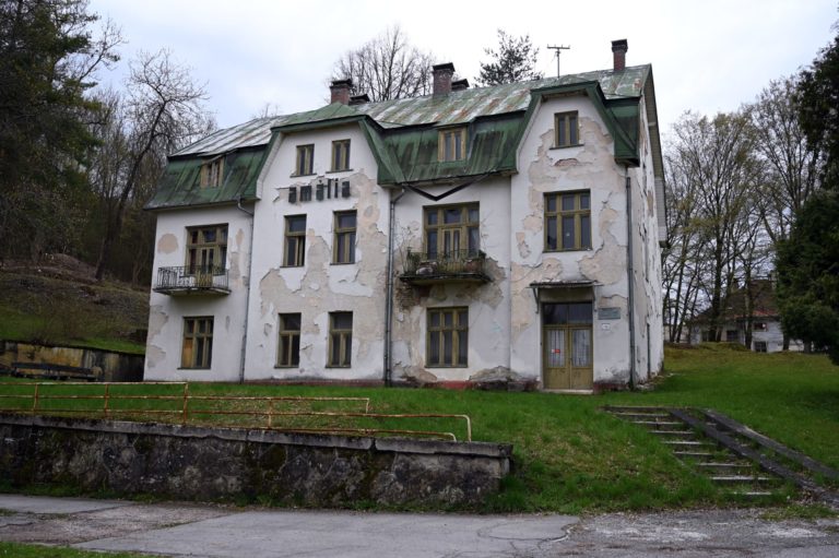Kúpeľný dom Bratislava. Kúpele Sliač čaká obnova zanedbaných historických kúpeľných domov a obnova celého kúpeľného areálu. Sliač, 17. apríl 2023. Foto: SITA/Jakub Julény