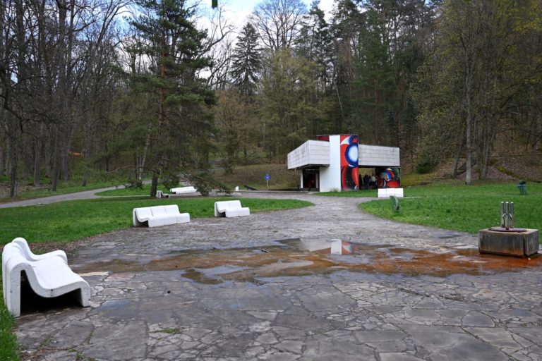 Pavilón sliačskych minerálnych prameňov. Kúpele Sliač čaká obnova zanedbaných historických kúpeľných domov a obnova celého kúpeľného areálu. Sliač, 17. apríl 2023. Foto: SITA/Jakub Julény