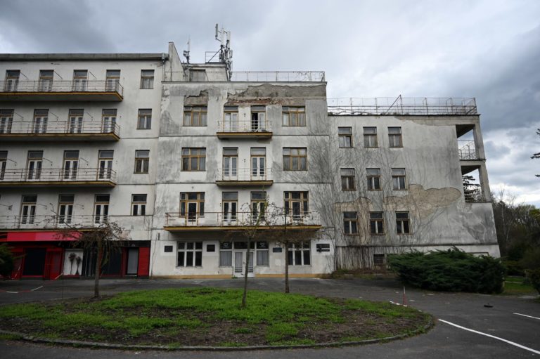Kúpeľný dom Slovensko. Kúpele Sliač čaká obnova zanedbaných historických kúpeľných domov a obnova celého kúpeľného areálu. Sliač, 17. apríl 2023. Foto: SITA/Jakub Julény