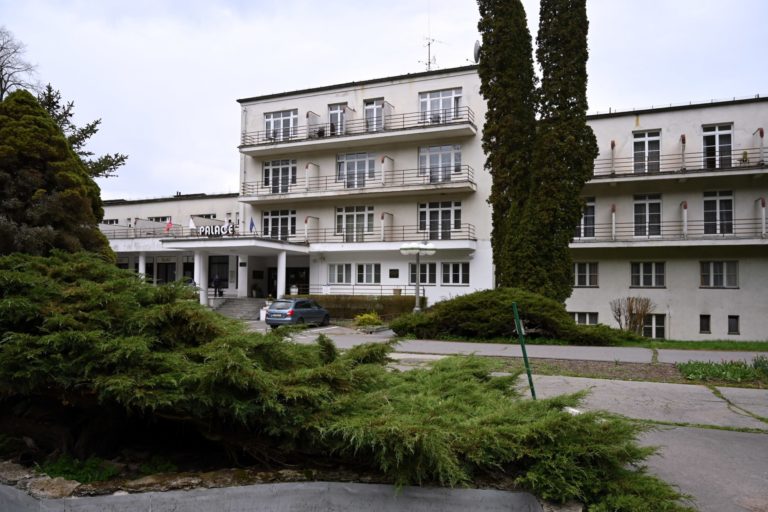 Kúpeľný dom Palace. Kúpele Sliač čaká obnova zanedbaných historických kúpeľných domov a obnova celého kúpeľného areálu. Sliač, 17. apríl 2023. Foto: SITA/Jakub Julény