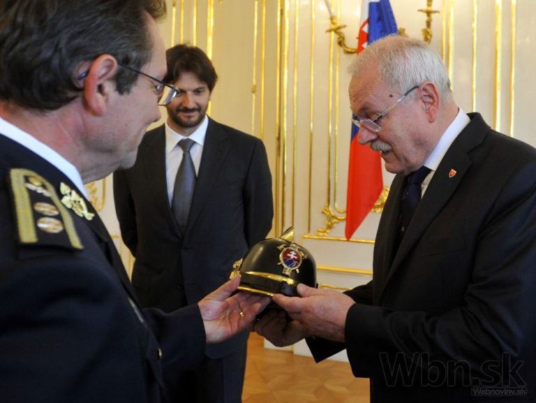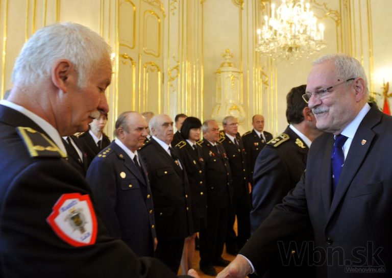 Prezident Dobrovoľnej požiarnej ochrany SR Ladislav Pethö počas prijatia predstaviteľov Dobrovoľnej požiarnej ochrany SR prezidentom SR. Foto: SITA/Ján Slovák