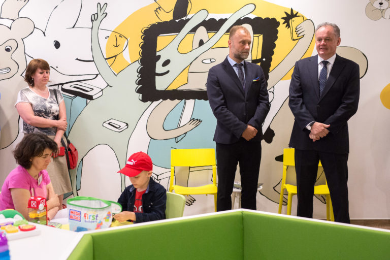 Detskí pacienti počas návštevy prezidenta SR na Dennej klinike Kliniky detskej hematológie a onkológie LF UK a DFNsP. Bratislava, 31. máj 2017. Foto: SITA/Marko Erd