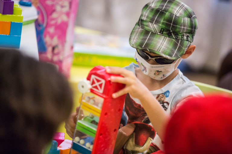 Detskí pacienti počas návštevy prezidenta SR na Dennej klinike Kliniky detskej hematológie a onkológie LF UK a DFNsP. Bratislava, 31. máj 2017. Foto: SITA/Marko Erd.