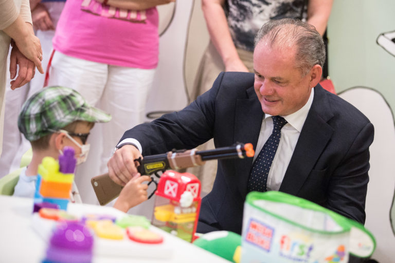 Prezident Andrej Kiska navštívil v stredu Dennú kliniku, ktorá je súčasťou Kliniky detskej hematológie a onkológie v Detskej fakultnej nemocnici s poliklinikou (DFNsP) v Bratislave.