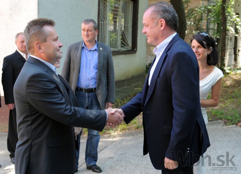 Prezident SR Andrej Kiska (vpravo) a riaditeľ centra Viktor Vicena (vľavo) počas návštevy Reedukačného centra v Hlohovci. Hlohovec, 5. august 2014. Foto: SITA/Martin Havran