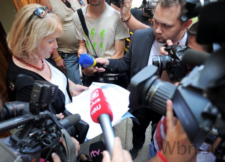 Prezident SR Andrej Kiska (uprostred) a verejná ochrankyňa práv Jana Dubovcová (uprostred vpravo) počas brífingu pri príležitosti návštevy Reedukačného centa v Hlohovci. Hlohovec, 5. august 2014. Foto: SITA/Martin Havran