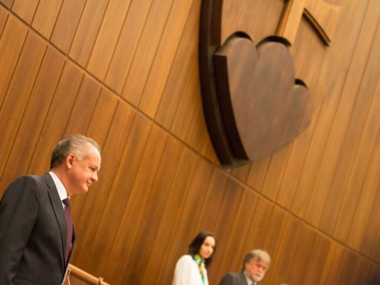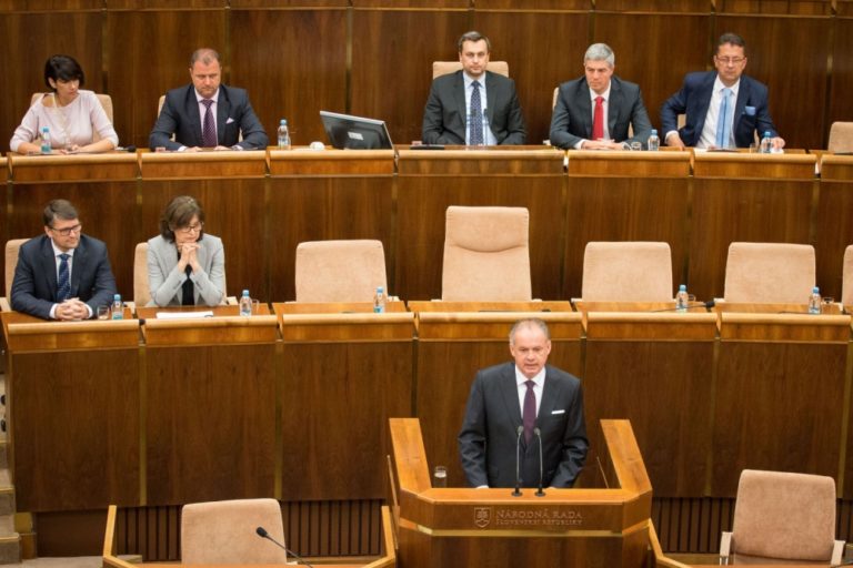 Prezident Andrej Kiska v parlamente predniesol správu o stave republiky. Kiska už v aktuálnom volebnom období pred poslancami vystúpil, a to koncom apríla po schválení programového vyhlásenia vlády. Bratislava, 16. jún 2016. Foto: SITA/Marek Mrviš
