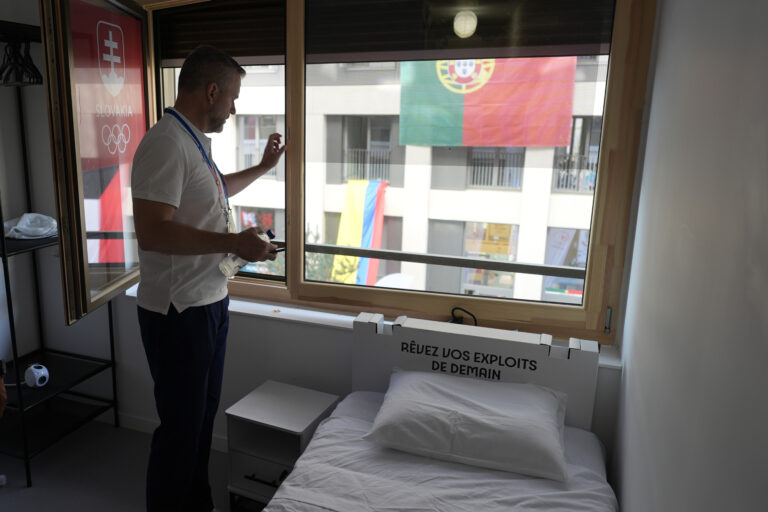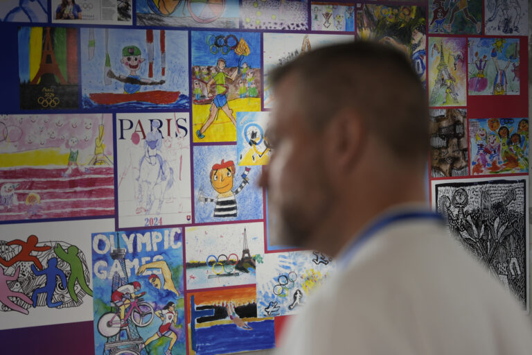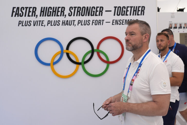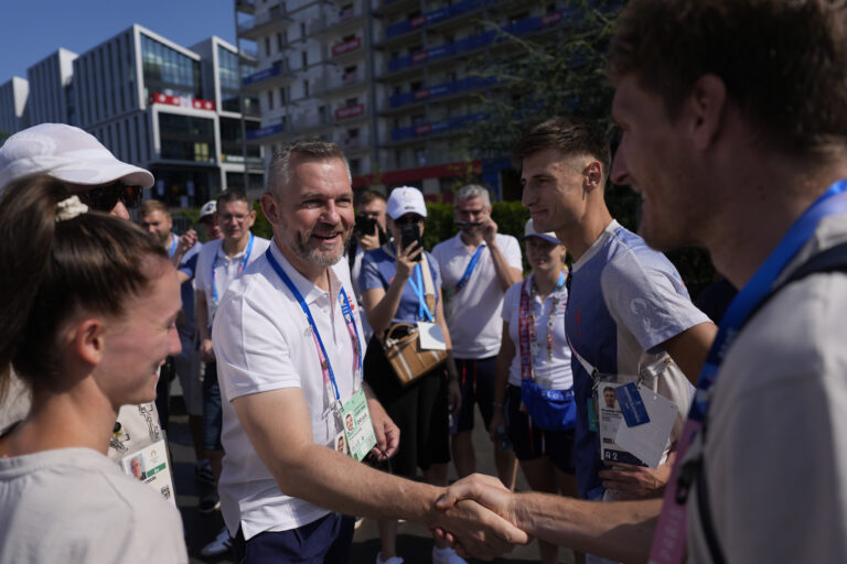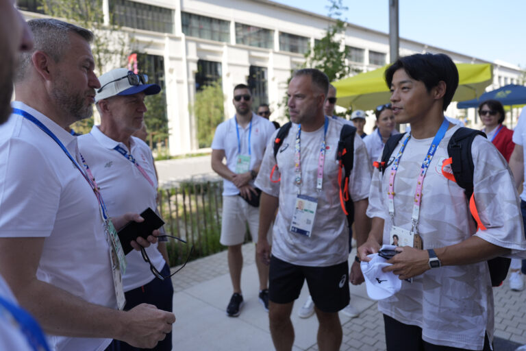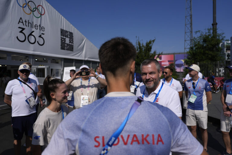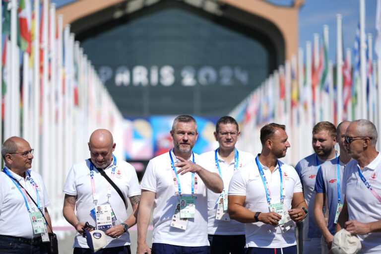 Slovenský prezident Peter Pellegrini pri návšteve Olympijskej dediny na letnej olympiáde v Paríži. Paríž, 29. júl 2024. Foto: SITA/AP