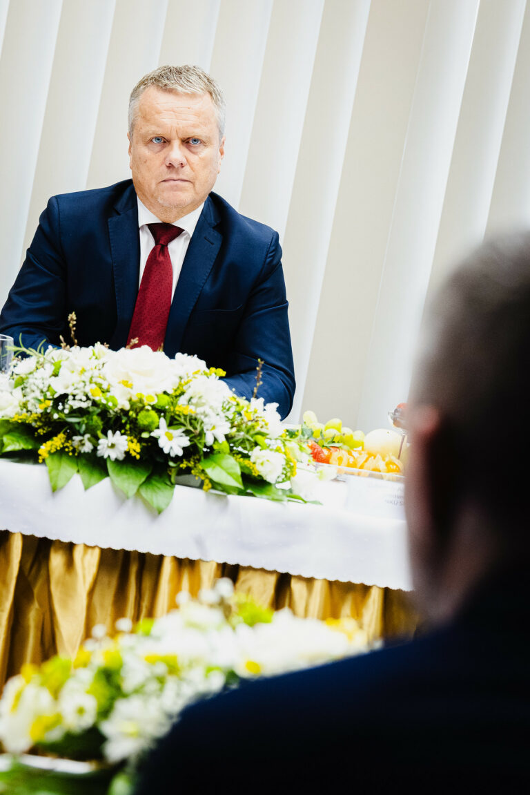 Predseda NKÚ SR Ľubomír Andrassy počas rokovania s prezidentom SR v rámci návštevy Najvyššieho kontrolného úradu (NKÚ) SR prezidentom SR. Bratislava, 11. marec 2025. Foto: SITA/Kancelária prezidenta SR