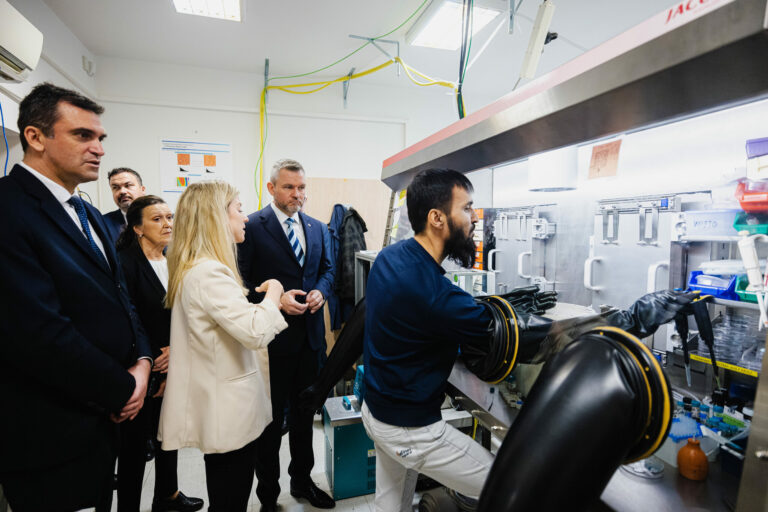 Prehliadka laboratórií SAV počas návštevy prezidenta SR v Slovenskej akadémii vied (SAV) v Bratislave. Bratislava, 12. marec 2025. Foto: SITA/Kancelária prezidenta SR