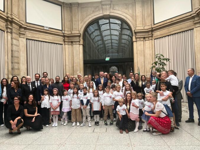 Stretnutie prezidenta Petra Pellegriniho so slovenskými a slovensko-talianskými rodinami žijúcimi v Miláne a so žiakmi Taliansko-slovenskej školy. Foto: SITA/Kristína Valovičová.