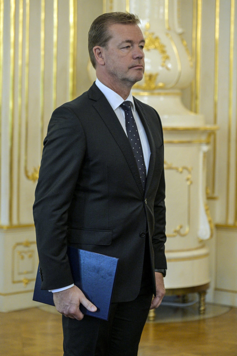 Vedúci stálej delegácie SR pri Severoatlantickej aliancii (NATO) Marek Varga počas odovzdávania poverovacích listín prezidentom SR v Prezidentskom paláci veľvyslancom Slovenskej republiky v zahraničí. Bratislava, 3. júl 2024. Foto: SITA/Milan Illík