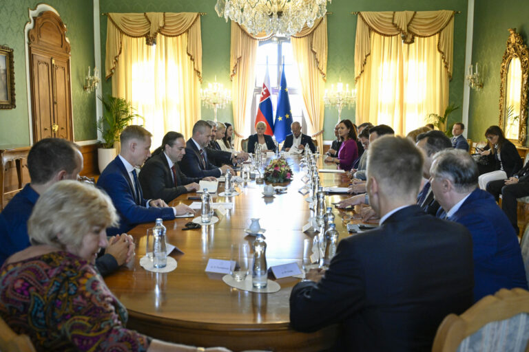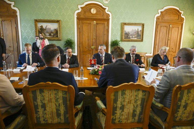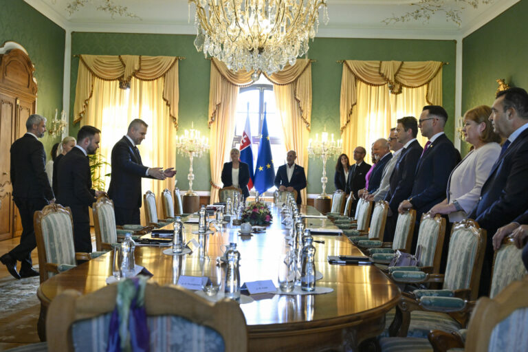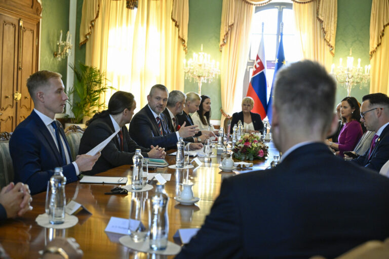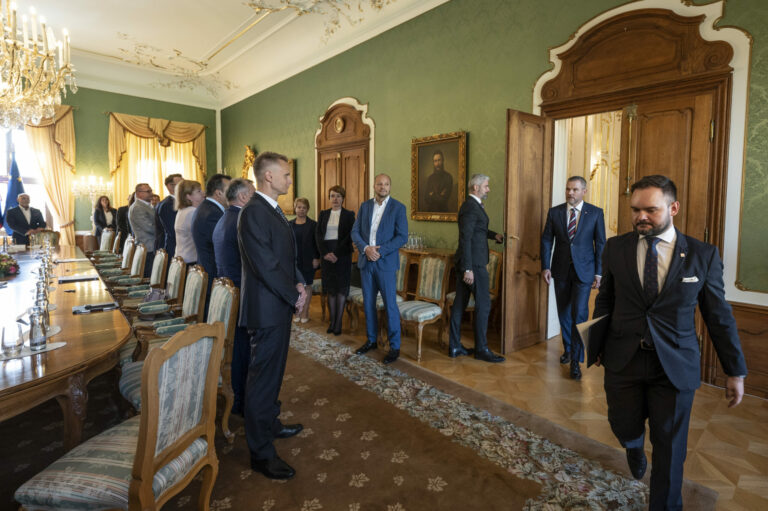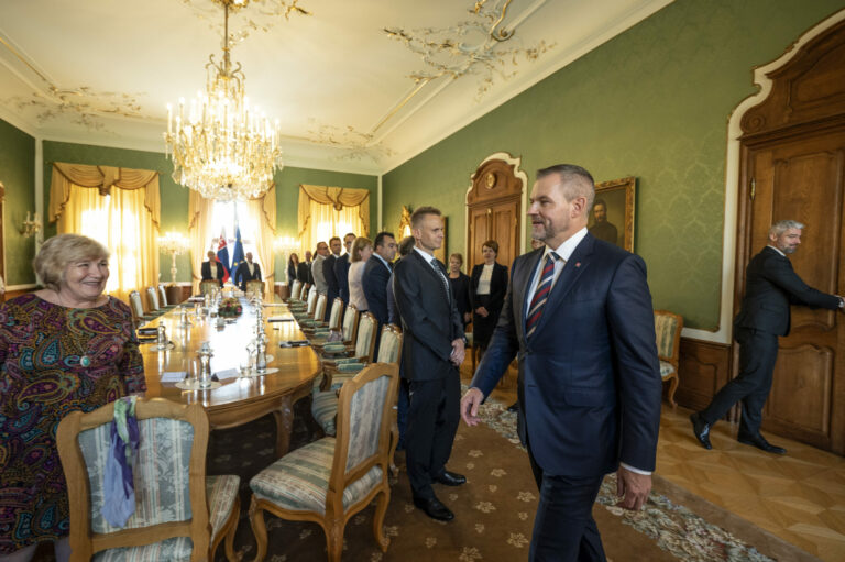 Prezident SR Peter Pellegrini (tretí sprava v pozadí) počas prijatia predstaviteľov zdravotníctva prezidentom SR v Prezidentskom paláci. Bratislava, 8. október 2024. Foto: SITA/Milan Illík