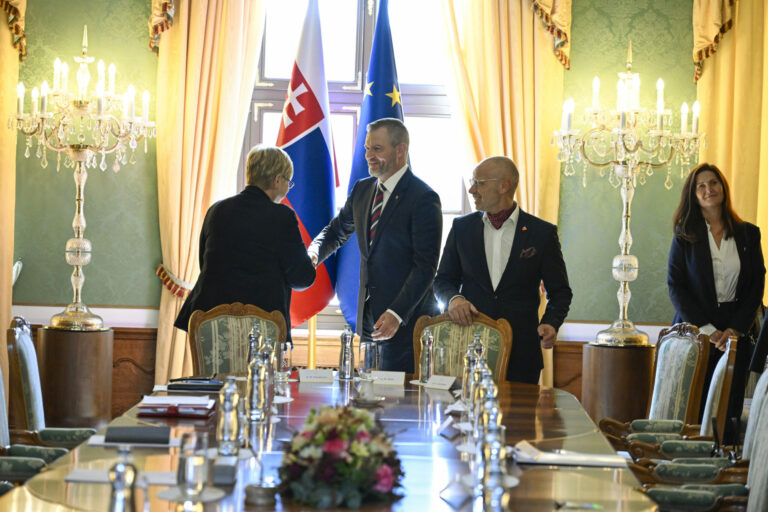 Prezident SR Peter Pellegrini (druhý sprava) počas príchodu v rámci prijatia predstaviteľov zdravotníctva prezidentom SR v Prezidentskom paláci. Bratislava, 8. október 2024. Foto: SITA/Milan Illík