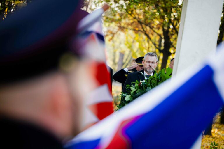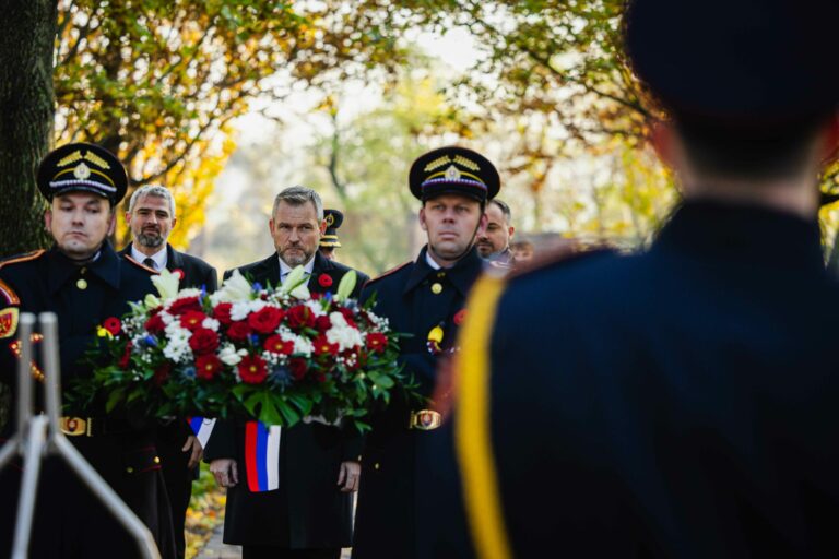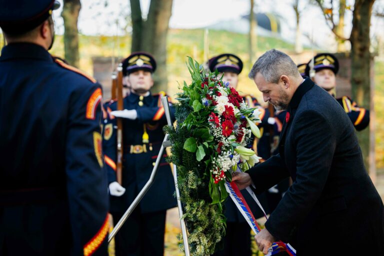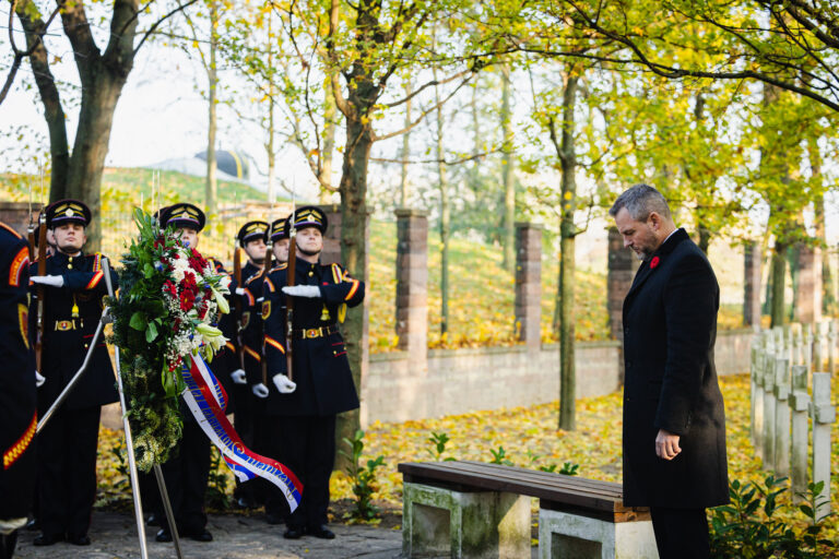 Prezident SR Peter Pellegrini si uctil pamiatku obetí 1. svetovej vojny na vojnovom cintoríne v bratislavskej Petržalke pri príležitosti Medzinárodného dňa vojnových veteránov. Bratislava, 10. november 2024. Foto: SITA/Kancelária prezidenta SR