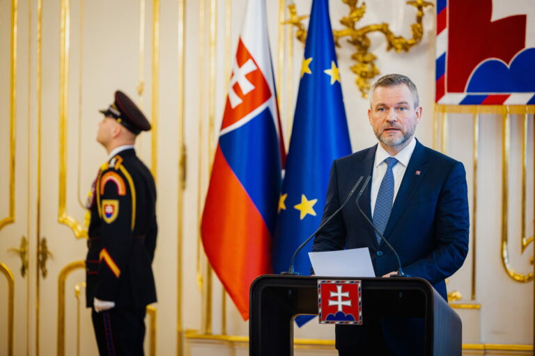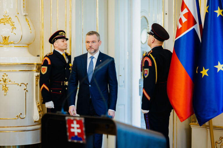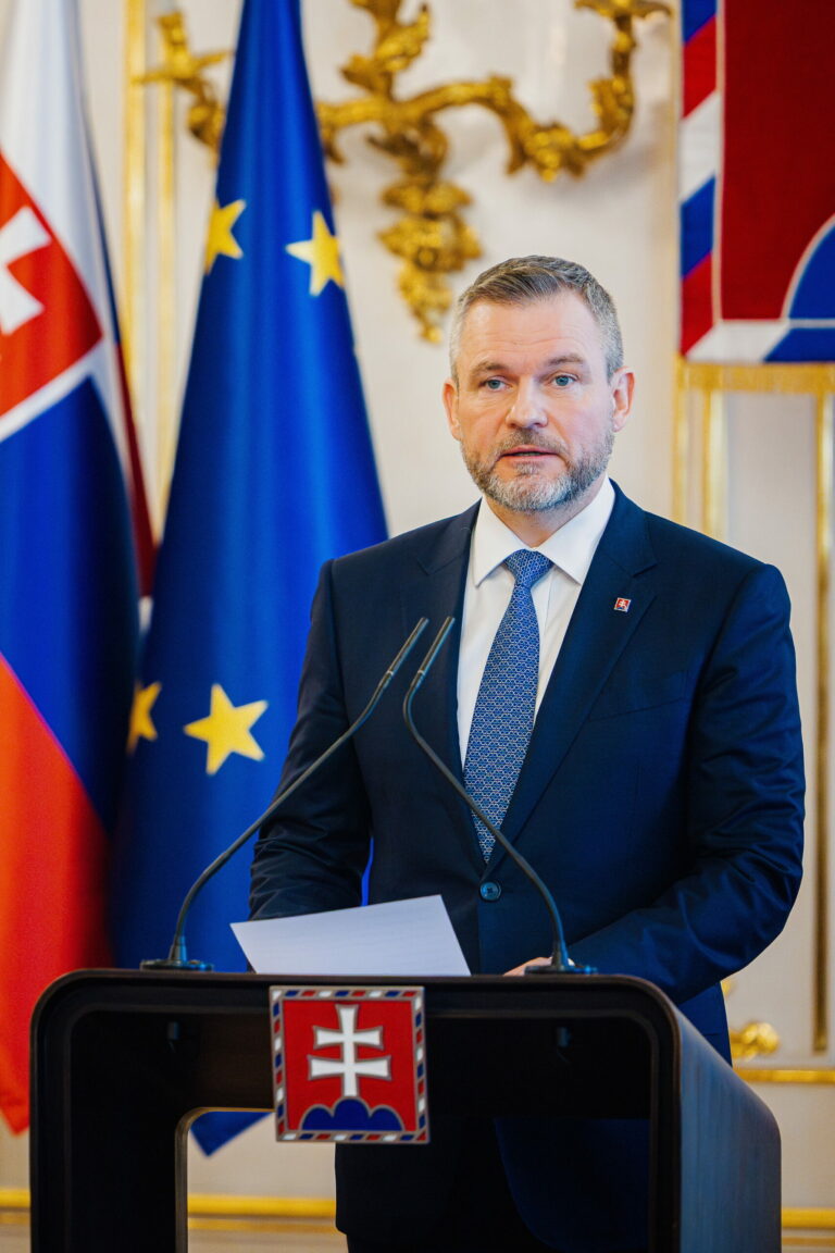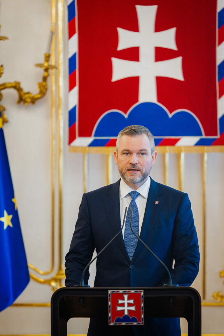 Prezident SR Peter Pellegrini počas odvolania ministra cestovného ruchu a športu SR Dušana Keketiho a vymenovania nového ministra Rudolfa Huliaka prezidentom SR v Prezidentskom paláci. Bratislava, 5. február 2025. Foto: SITA/Kancelária prezidenta