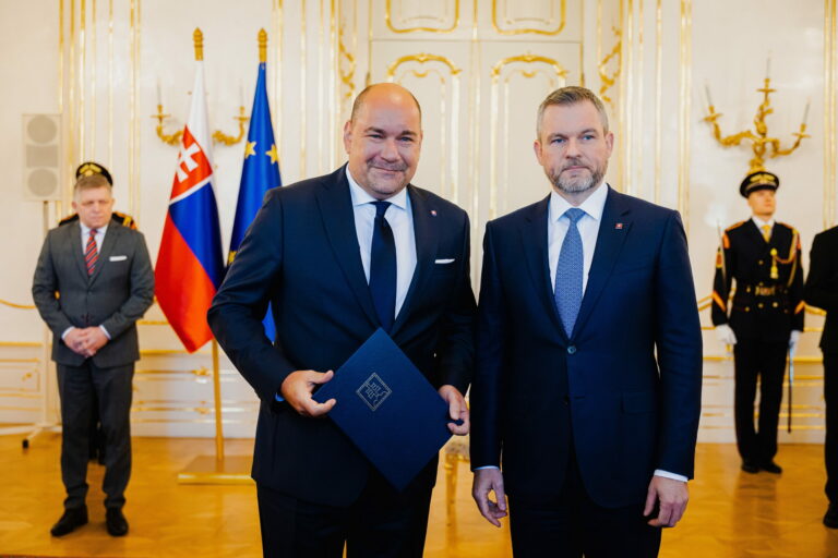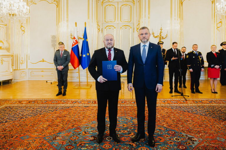 Zľava: Odchádzajúci minister cestovného ruchu a športu SR Dušan Keketi počas odvolania z funkcie ministra a vymenovania nového ministra Rudolfa Huliaka prezidentom SR v Prezidentskom paláci. Bratislava, 5. február 2025. Foto: archívne, SITA/Kancelária prezidenta