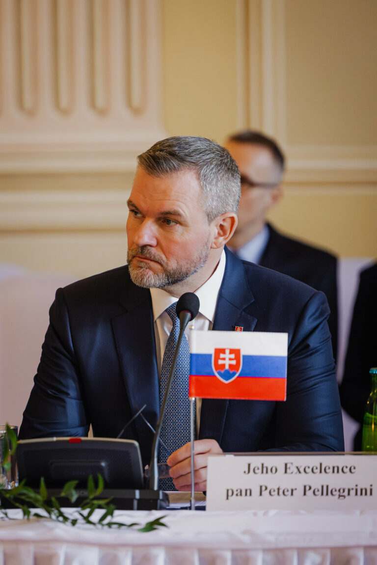 Prezident SR Peter Pellegrini počas stretnutia na zámku Slavkov pri Brne pri príležitosti okrúhleho 10. výročia podpísania Slavkovskej deklarácie. Brno, 5. marec 2025. Foto: SITA/Kancelária prezidenta