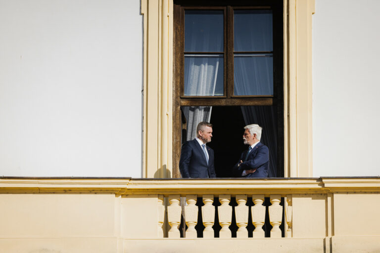 Zľava: Prezident SR Peter Pellegrini a prezident ČR Petr Pavel počas stretnutia na zámku Slavkov pri Brne pri príležitosti okrúhleho 10. výročia podpísania Slavkovskej deklarácie. Brno, 5. marec 2025. Foto: SITA/Kancelária prezidenta
