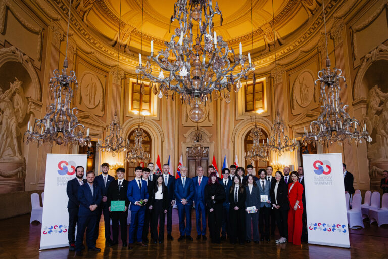 Prezident SR Peter Pellegrini (uprostred) počas stretnutia na zámku Slavkov pri Brne pri príležitosti okrúhleho 10. výročia podpísania Slavkovskej deklarácie. Brno, 5. marec 2025. Foto: SITA/Kancelária prezidenta