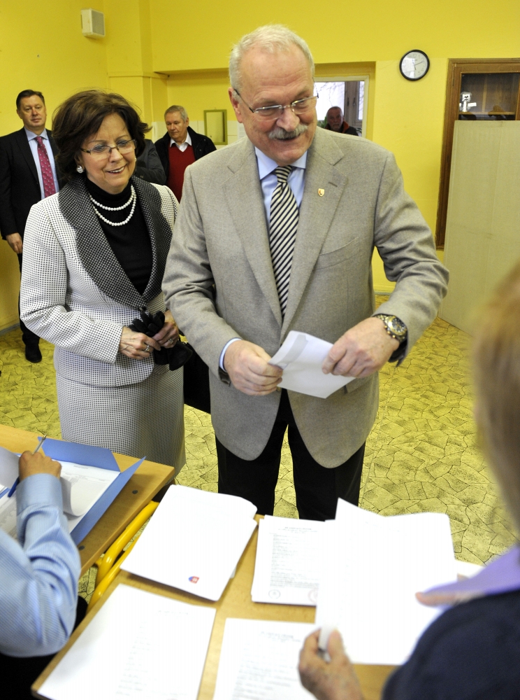Prezident SR Ivan Gašparovič (vpravo) s manželkou Silviou počas volebného aktu v prezidentských voľbách 2014. Bratislava, 15. marec 2014. Foto: SITA/Ján Slovák