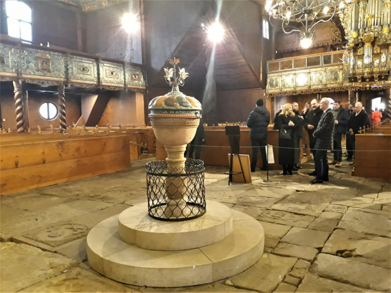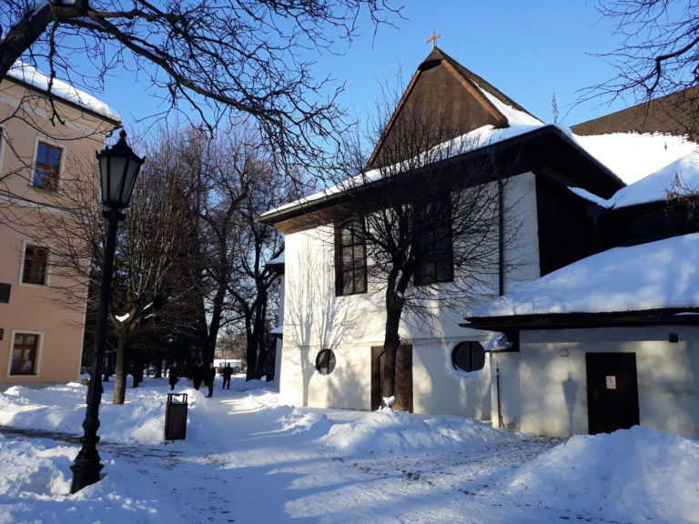 Drevený artikulárny kostol v Kežmarku počas regionálneho výjazdu prezidentky SR na Spiši. Kežmarok, 8. február 2023. Foto: SITA/Mária Frisová