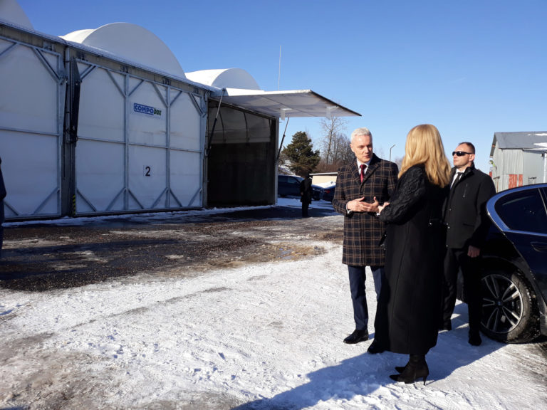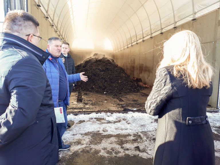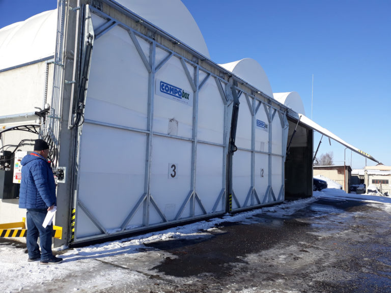 Vedúci kompostárne v Kežmarku Miroslav Fudaly otvára jeden z boxov kompostárne počas prehliadky v rámci regionálneho výjazdu prezidentky SR na Spiši. Kežmarok, 8. február 2023. Foto: SITA/Mária Frisová