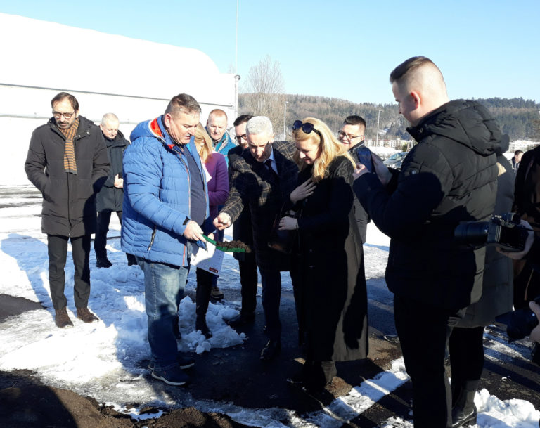 V popredí zľava: Vedúci kompostárne Miroslav Fudaly, primátor Kežmarku Ján Ferenčák a prezidentka SR Zuzana Čaputová po prehliadke kompostárne v Kežmarku počas regionálneho výjazdu prezidentky SR na Spiši. Kežmarok, 8. február 2023. Foto: SITA/Mária Frisová