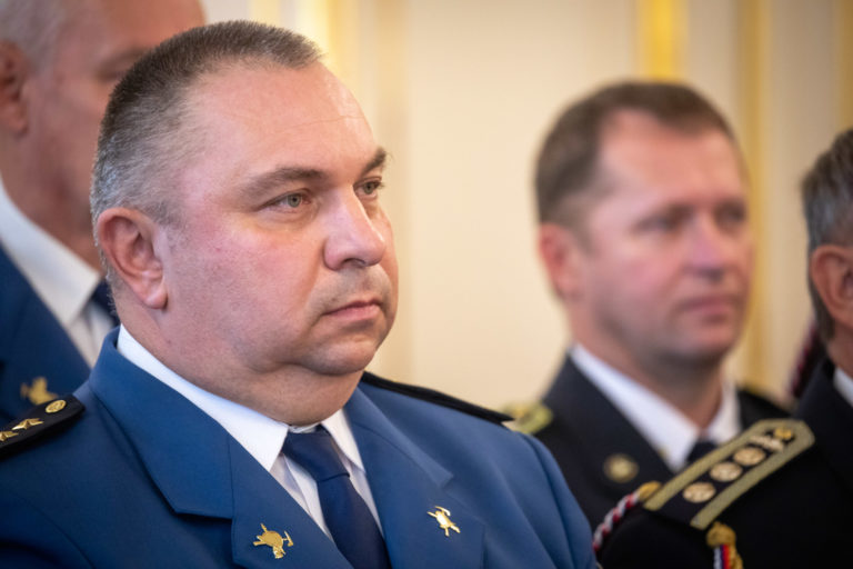 Prezident HaZZ Pavol Mikulášek počas prijatia zástupcov Hasičského a záchranného zboru (HaZZ) a Dobrovoľnej požiarnej ochrany (DPO) SR prezidentkou SR v Prezidentskom paláci pri príležitosti 20. výročia Hasičského a záchranného zboru a 100. výročia dobrovoľného hasičstva. Bratislava, 12. október 2022. Foto: SITA/Diana Černáková