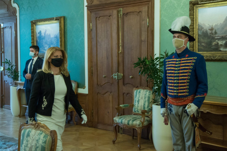 Prezidentka Zuzana Čaputová pred začiatkom troch najvyšších činiteľov v Prezidentskom paláci. Bratislava, 4. september 2020. Foto: SITA/Ľudovít Vaniher.