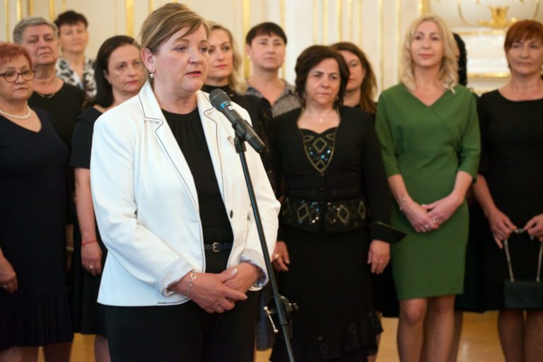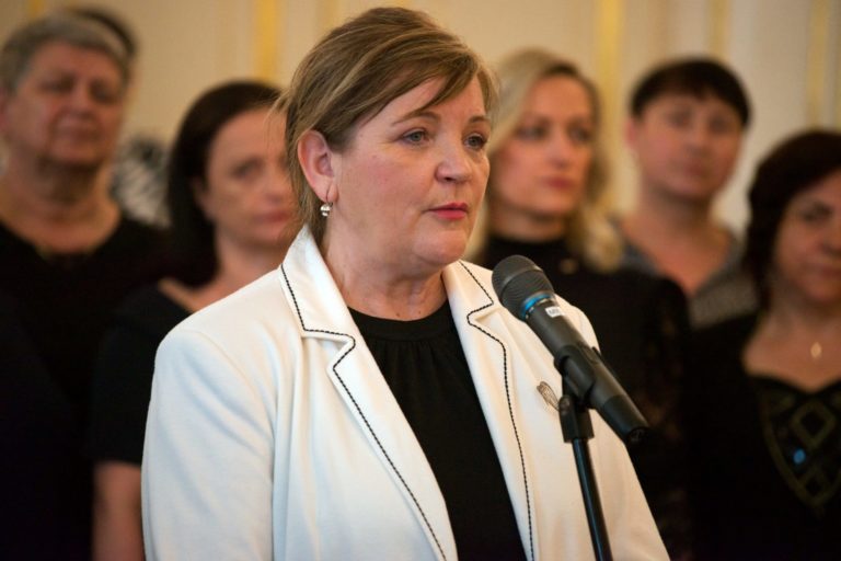 Prezidentka komory zdravotných sestier Iveta Lazorová počas prijatia zdravotných sestier ocenených Bielym srdcom prezidenttkou SR v Prezidentskom paláci pri príležitosti Medzinárodného dňa sestier. Foto: SITA/Jakub Julény