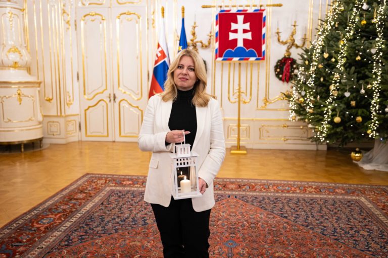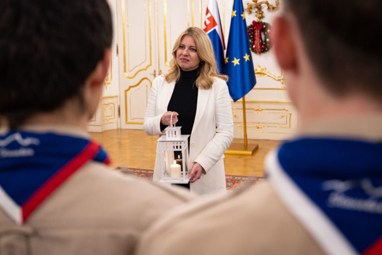 Prezidentka SR Zuzana Čaputová počas prevzatia Betlehemského svetla od členov organizácie Slovenského skautingu v Prezidentskom paláci. Bratislava, 13. december 2022. Foto: SITA/Jana Birošová