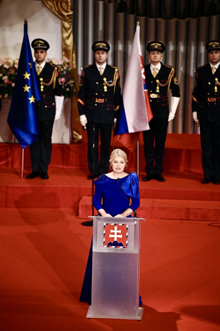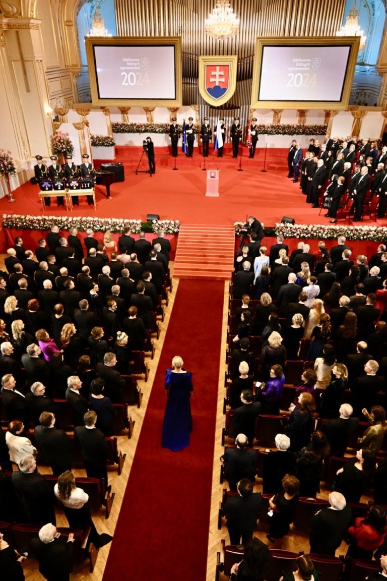 Prezidentka SR Zuzana Čaputová prichádza na udeľovanie štátnych vyznamenaní osobnostiam z rôznych oblastí spoločenského života pri príležitosti 31. výročia vzniku Slovenskej republiky. Bratislava, 14. január 2024. Foto: SITA/Milan Illík.