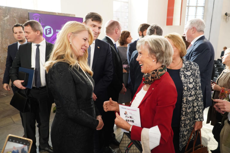 Prezidentka SR Zuzana Čaputová (štvrtá sprava) získala Cenu slobody Nadácie Friedricha Naumanna (FNF), ktorú si prevzala vo Franfurte nad Mohanom v Nemecku. Bratislava, 5. november 2022. Foto: SITA/Kancelária prezidenta