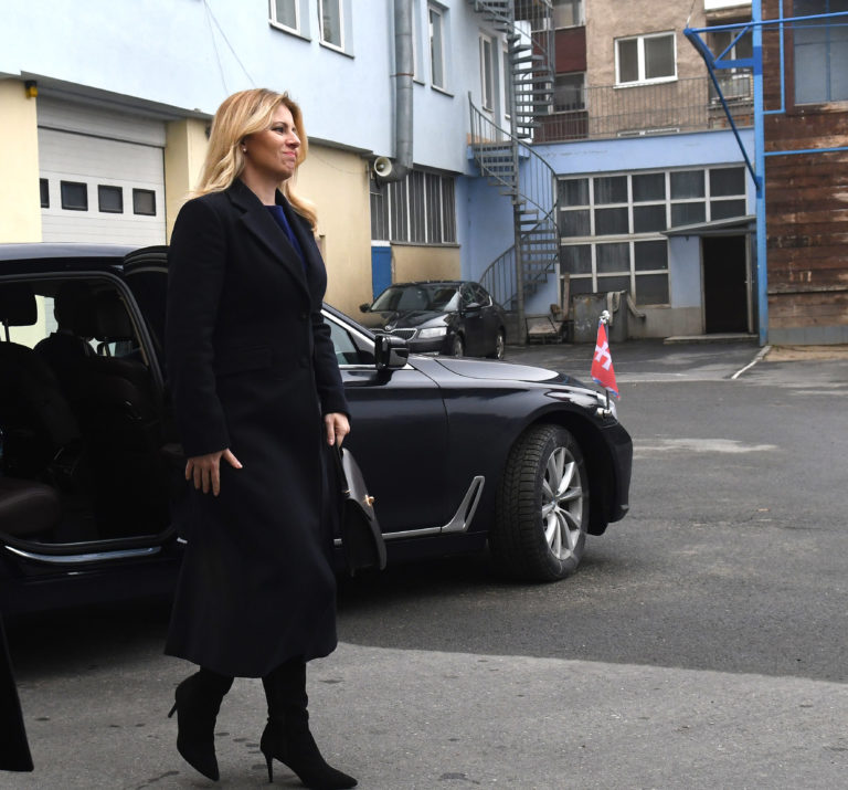 Prezidentka SR Zuzana Čaputová počas príchodu na stretnutie s príslušníkmi Krajského riaditeľstva Hasičského a záchranného zboru v rámci návštevy Prešova, aby osobne vyjadrila svoju podporu obyvateľom mesta po nedávnej tragédii na Mukačevskej ulici. Prešov, 16. december 2019. Foto: SITA/Viktor Zamborský