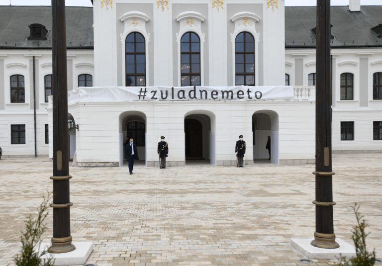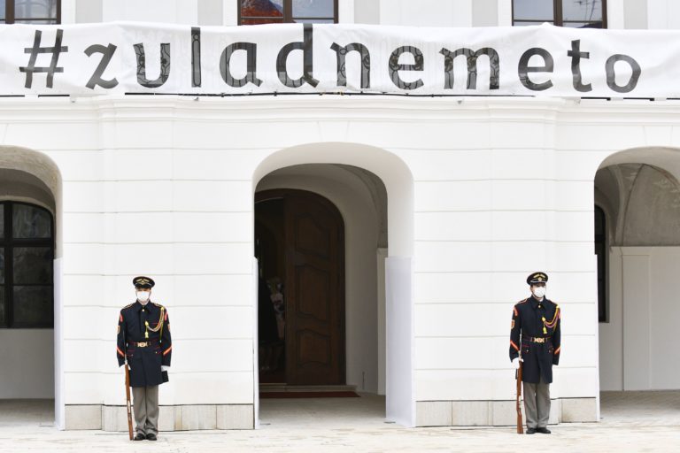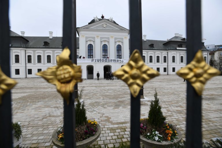 Atmosféra pred Prezidentským palácom pred vymenovaním novej vlády SR. Bratislava, 21. marec 2020. Foto: SITA/Martin Medňanský