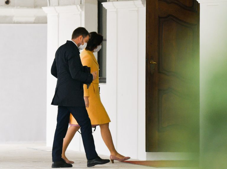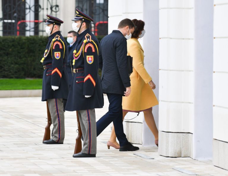 Sprava: Prvá podpredsedníčka strany Za ľudí Veronika a predseda hnutia OBYČAJNÍ ĽUDIA a nezávislé osobnosti (OĽANO) Igor Matovič počas príchodu do Prezidentského paláca pred vymenovaním novej vlády SR. Bratislava, 21. marec 2020. Foto: SITA/Martin Medňanský