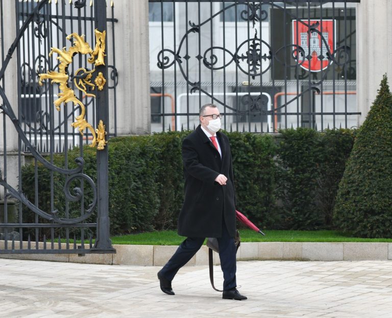 Budúci minister práce, sociálnych vecí a rodiny SR Milan Krajniak počas príchodu do Prezidentského paláca pred vymenovaním novej vlády SR. Bratislava, 21. marec 2020. Foto: SITA/Martin Medňanský