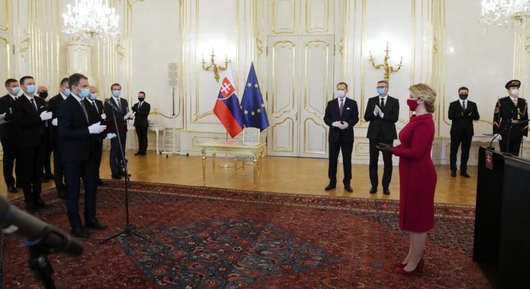 Atmosféra počas slávnostného vymenovania novej vlády prezidentkou Zuzanou Čaputovou. 21. marec 2020 Foto: www.facebook.com