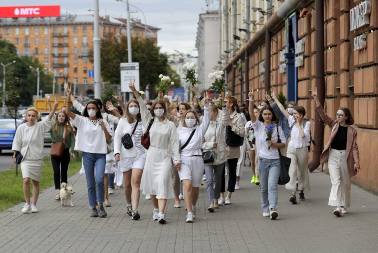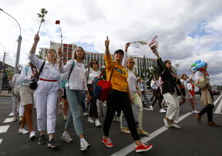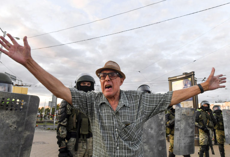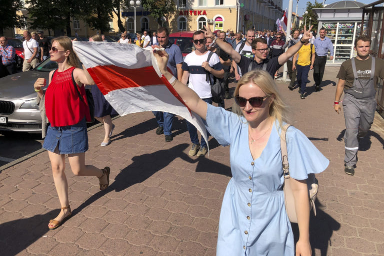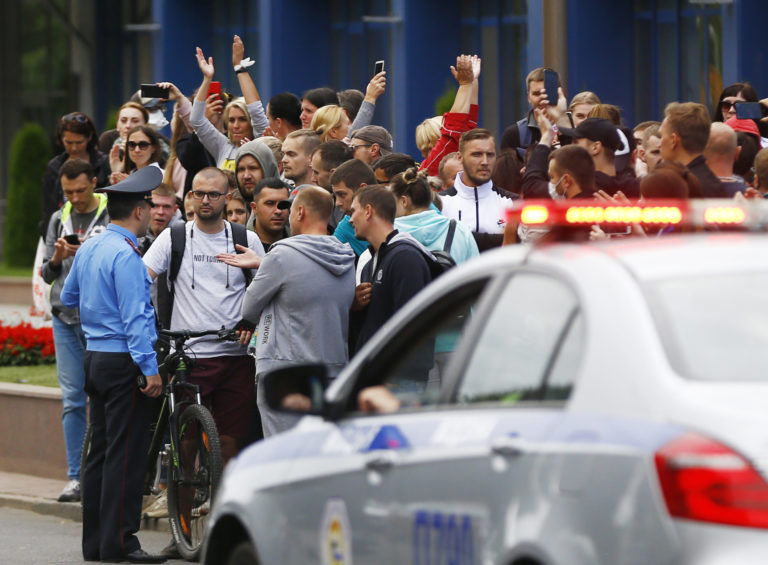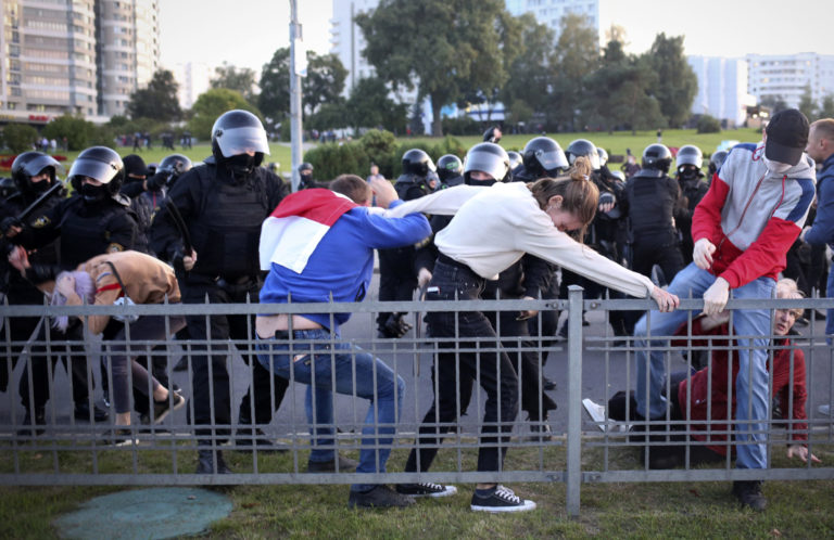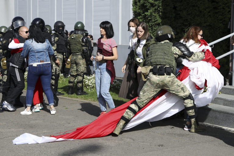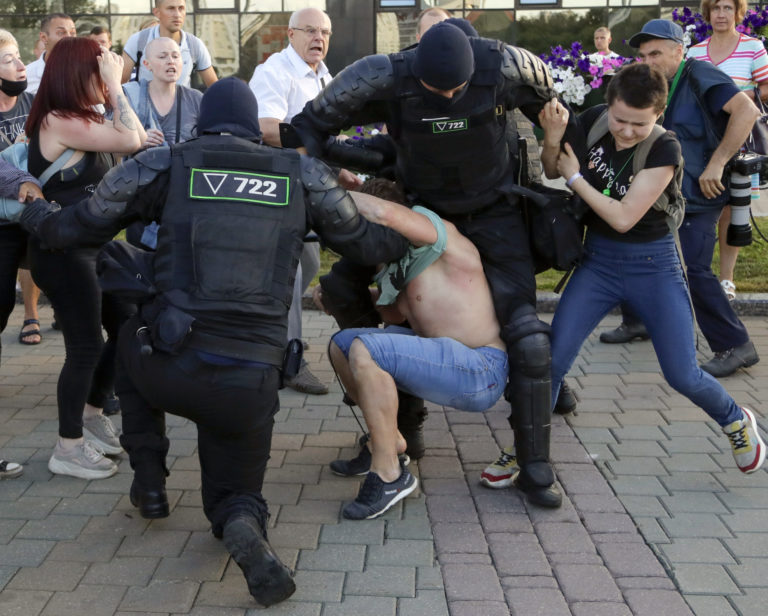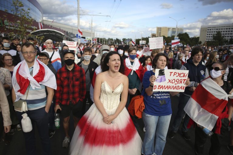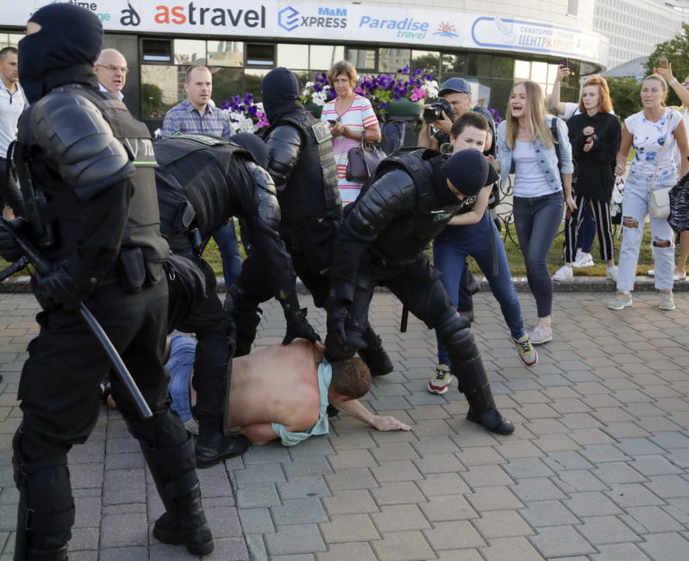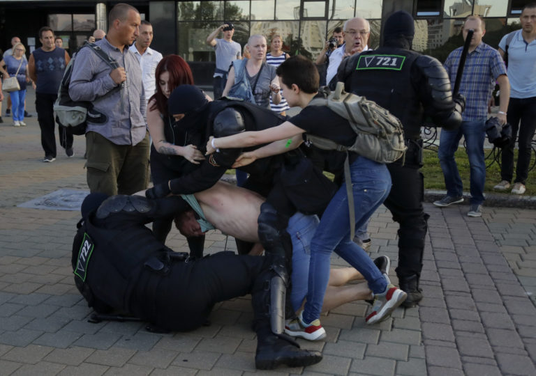Demonštrácie v Bielorusku pokračujú. Polícia zatýka i náhodných okoloidúcich. Foto: SITA/AP