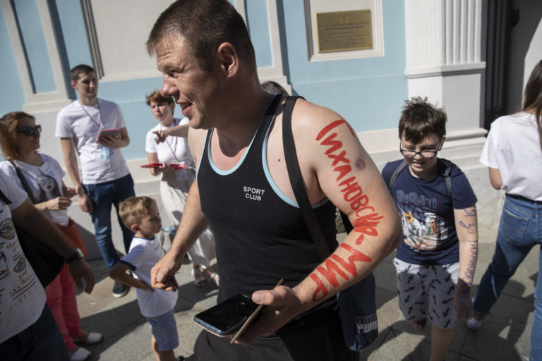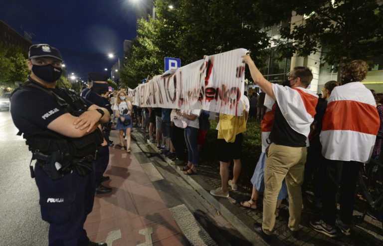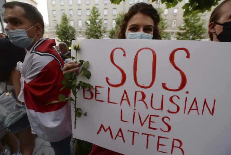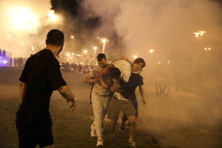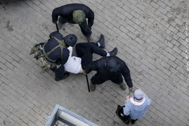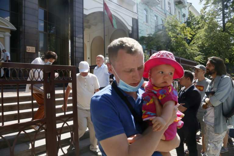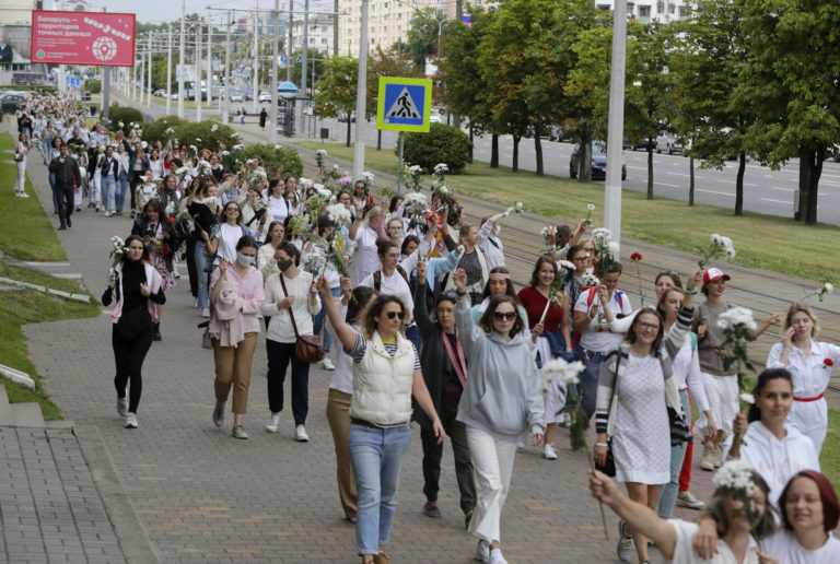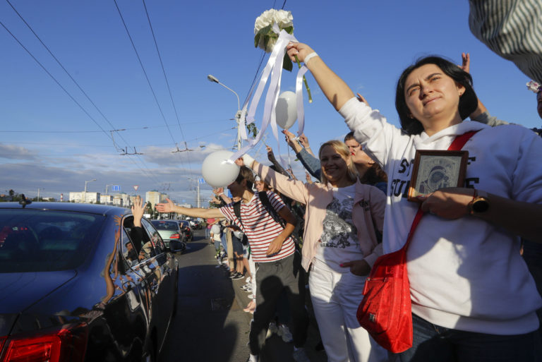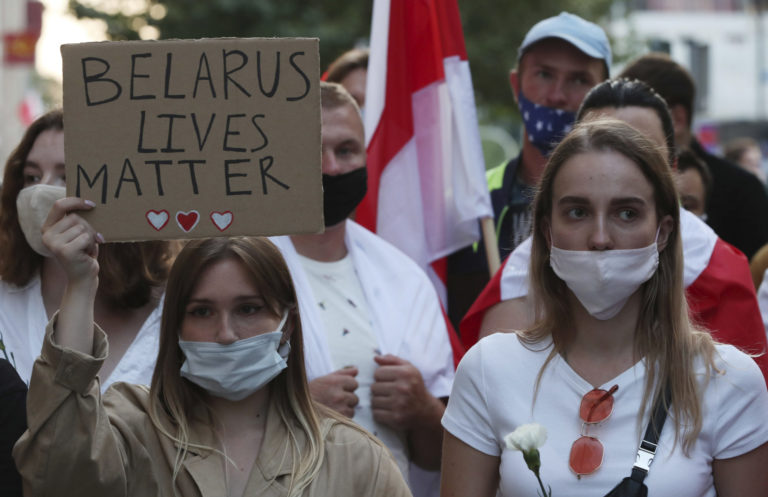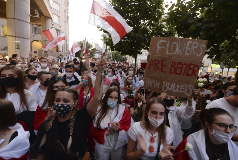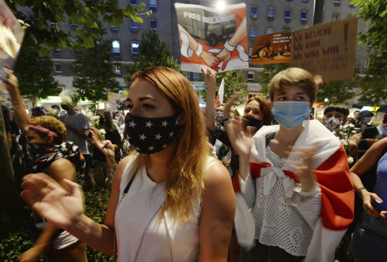 Demonštrácie v Bielorusku pokračujú. Polícia zatýka i náhodných okoloidúcich. Foto: SITA/AP