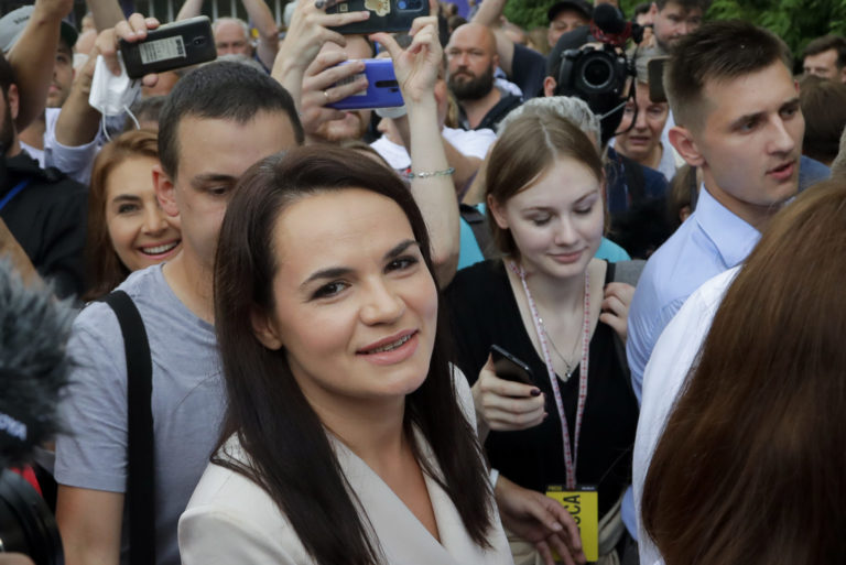 Lukašenkova konkurentka v boji o prezidentské kreslo Svetlana Cichanovská. Foto: SITA/AP